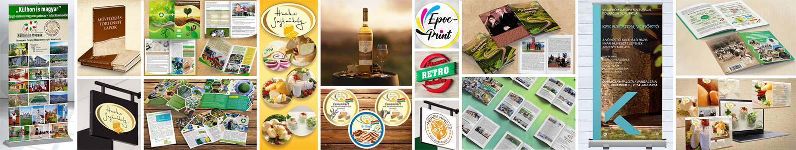 Nagyarculat elemei: Kisarculati elemek + weboldal terv, mappa design, promóciós eszközök, óriásplakát, rollup stb.